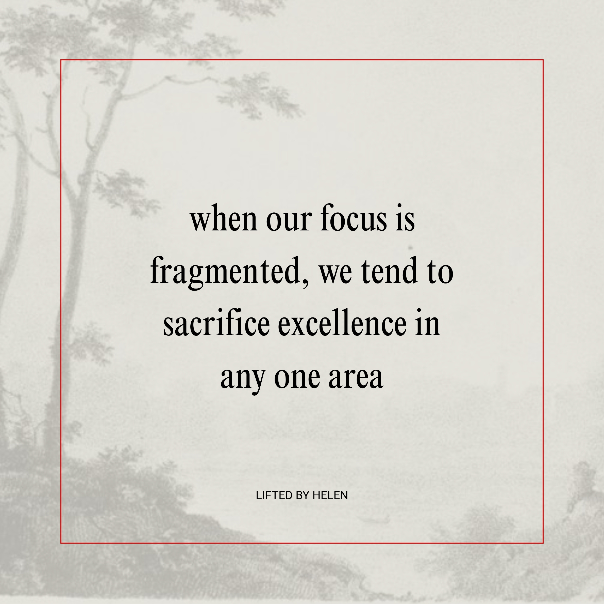 The thing is - when our focus is fragmented, we tend to sacrifice excellence in any one area. So, my question for you is, what do you need to quit in order to give proper attention to what really matters to you?